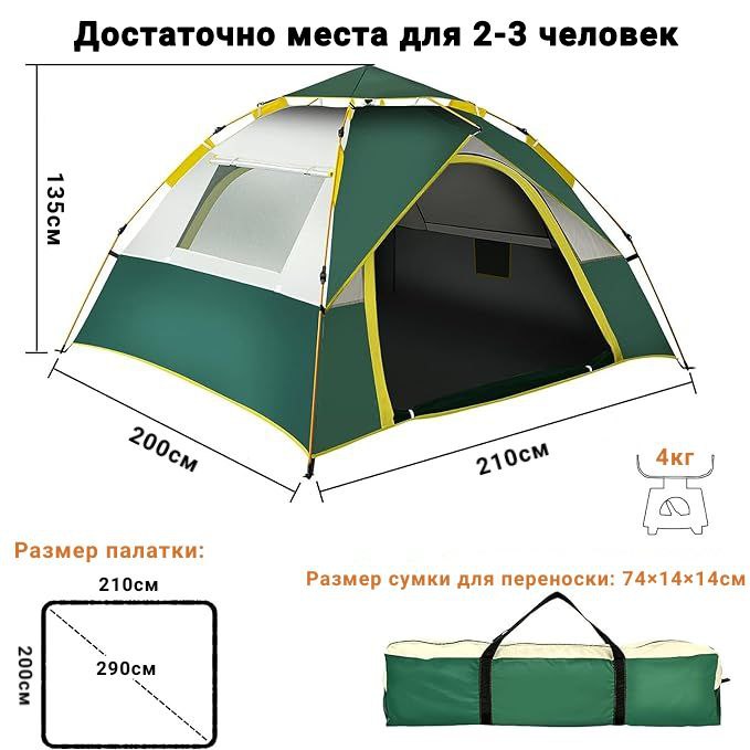 Благодаря автоматической сборке и фиксаторам, установка палатки займет всего 5 минут! Освободив время для наслаждения природой.