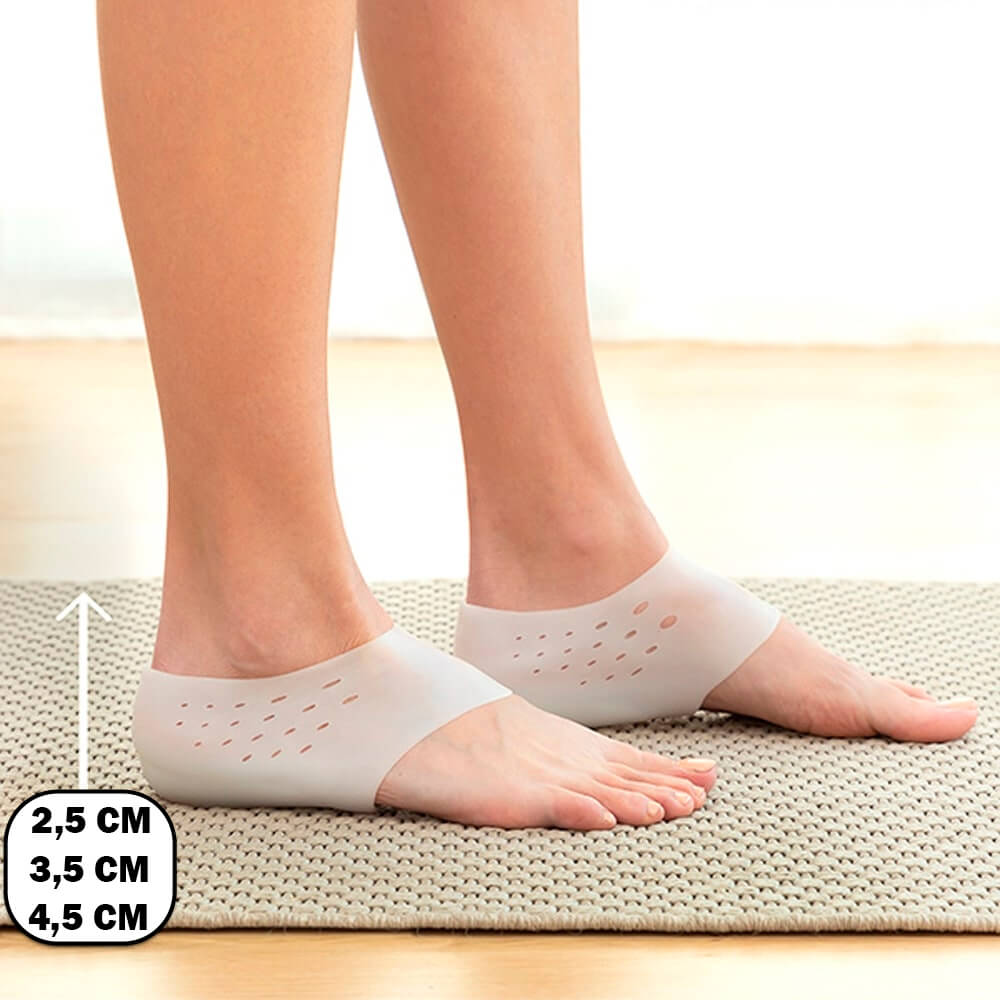 Накладки на пятки для роста — это уникальный аксессуар, который добавляет вашему росту до 4,5 см, оставаясь незаметным для окружающих. Они предлагают три уровня высоты на выбор: +2,5 см, +3,5 см или +4,5 см, позволяя вам легко адаптировать их под свои потребности.