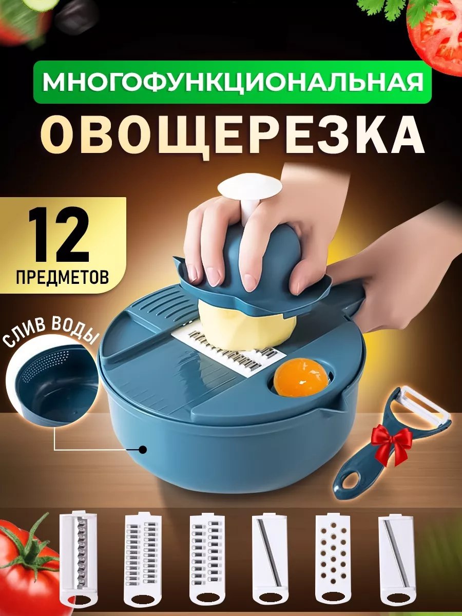 Многофункциональная терка для овощей и фруктов позволяет мгновенно шинковать продукты фигурными кусочками с минимумом усилий. Ручная овощерезка с насадками - универсальное приспособление с широкой функциональностью.